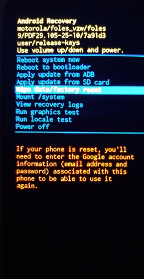 Motorola Razr Factory Data Reset Powered Off Verizon